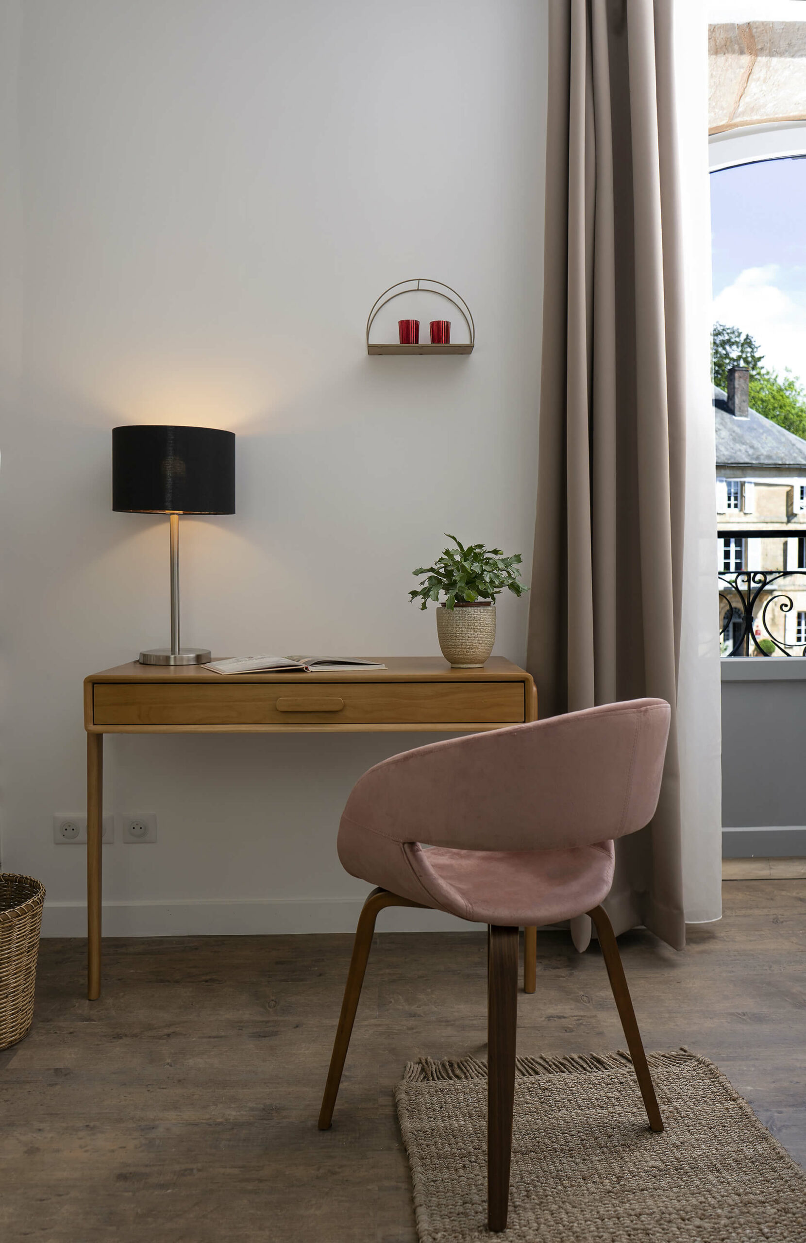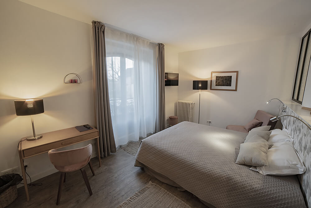 Pensée pour votre confort, la chambre inclut un bureau de travail, une télévision connectée, une connexion Wi-Fi haut débit (fibre), des rangements (penderie et étagères).