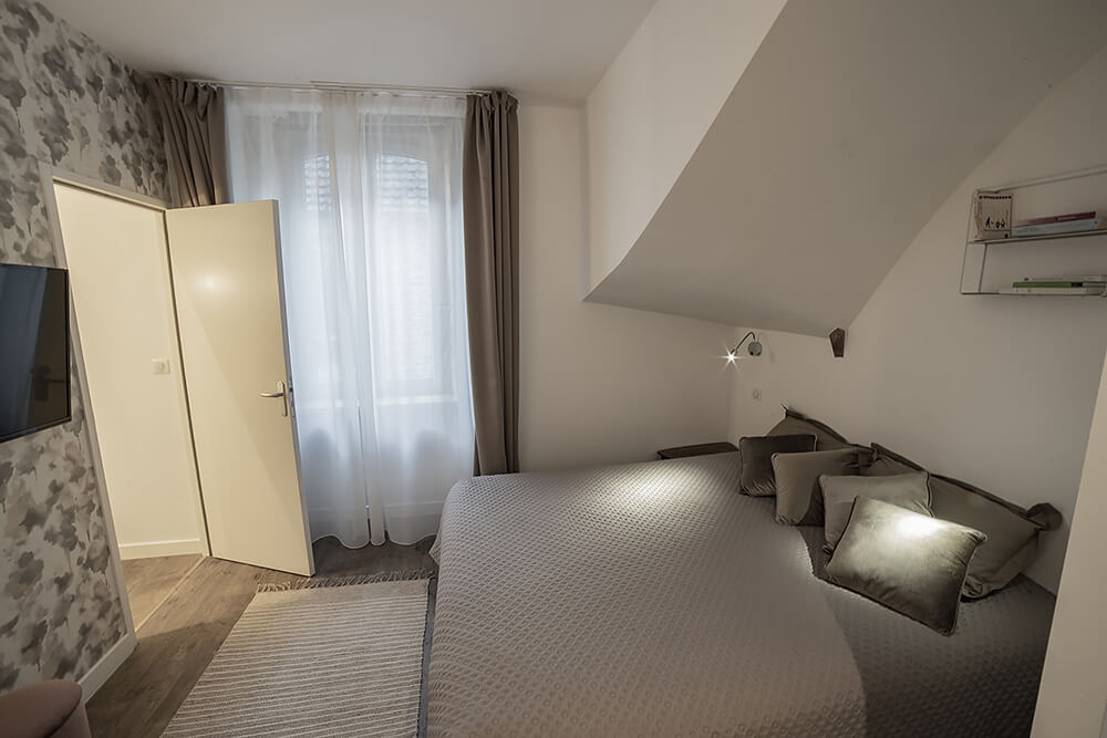 L’appartement est situé au 1er étage d’un bâtiment du XVIIIe siècle rénové avec soin, ce logement allie chaleur authentique et fonctionnalité moderne.